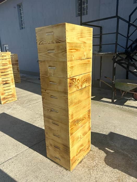 Executăm la comanda orice tip de stupi din lemn de molid sau brad cu umiditatea intre 6% si 8%, cu grosimea peretilor intre 21mm si 25mm.