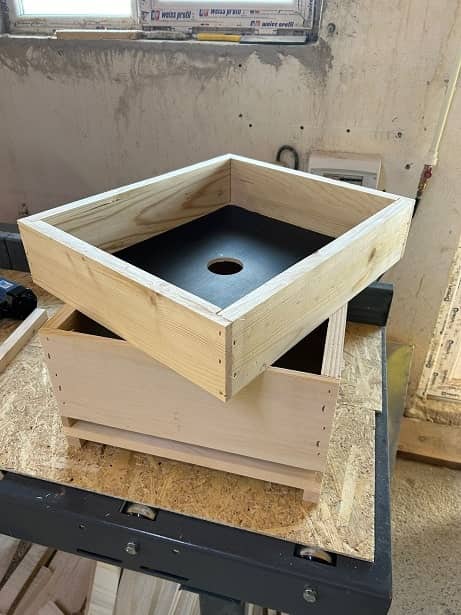 Fund detașabil cu două urdinis uri pentru stup pe 10 rame cu dimensiunea 42,5 cm x 49,4 cm